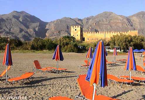Children's beach and castle, Kallikratis gorge in the background