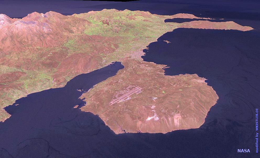 with airport, Souda bay (left), Chania (middle),